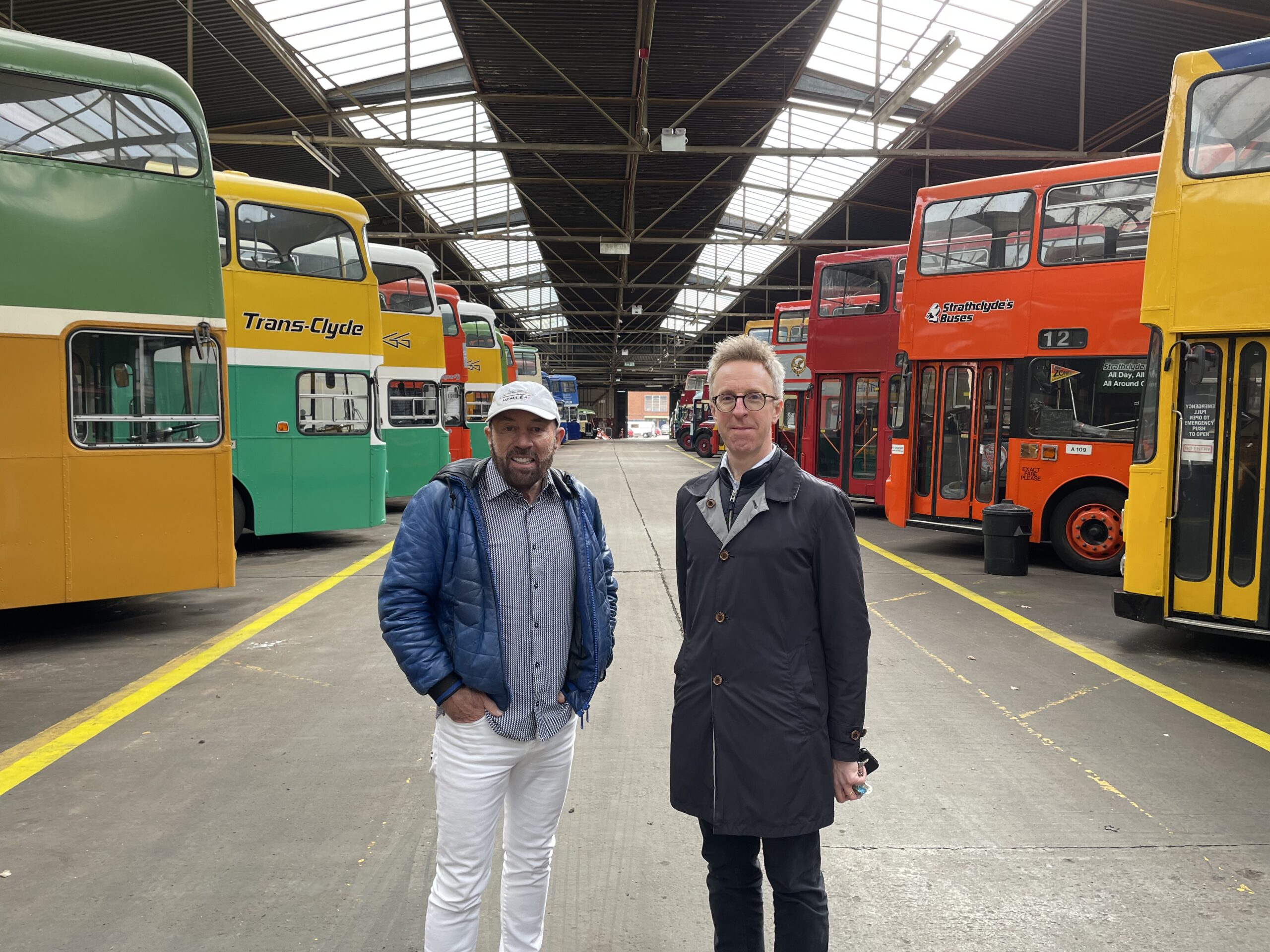 Ken Bruce meets GVVT Chairman Steven Booth at Bridgeton Bus Garage April Open Sunday
